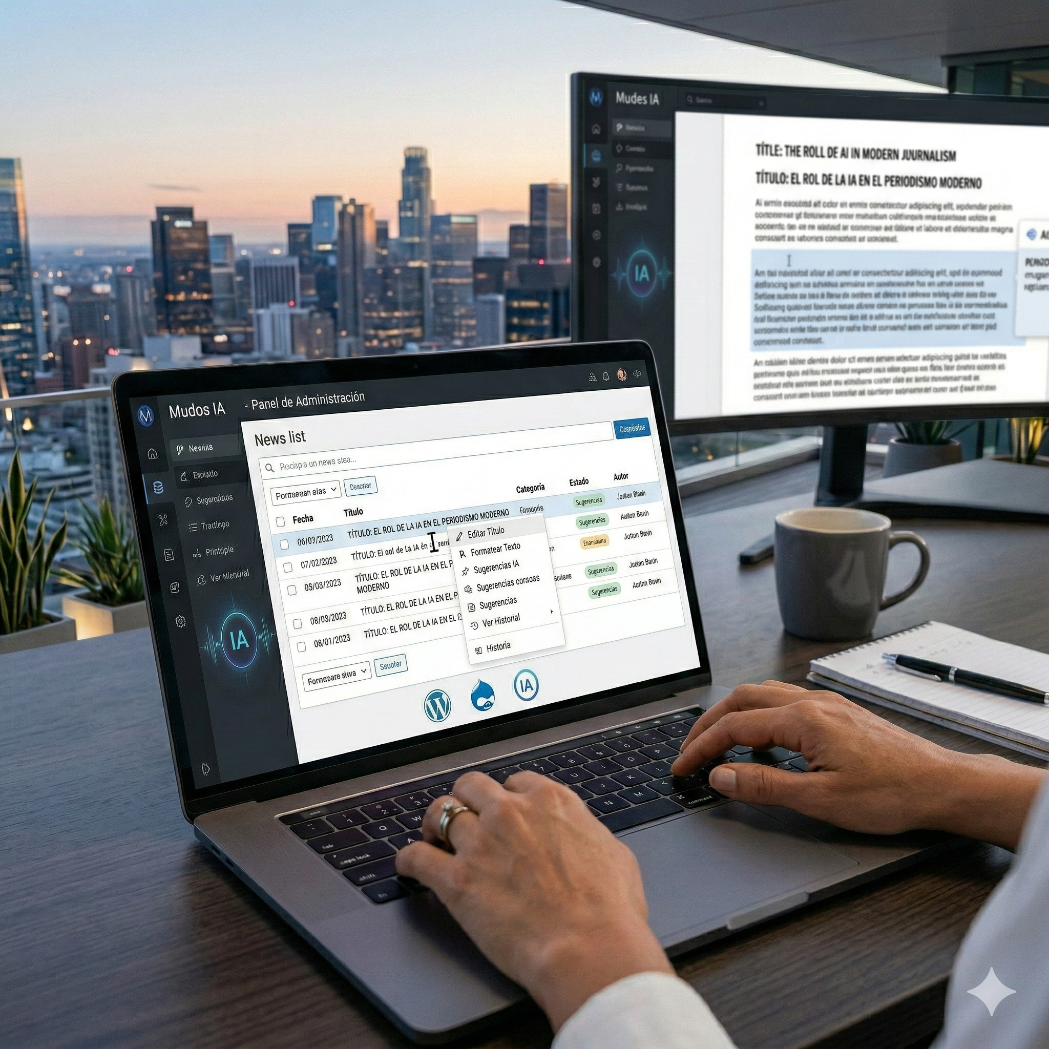 Medios IA es un sistema de gestión de contenidos (CMS) de última generación, potenciado con inteligencia artificial, diseñado específicamente para redacciones y medios digitales. Desarrollado sobre tecnologías open source como WordPress y Drupal, permite a los equipos de redacción crear, gestionar y publicar contenido de forma más rápida e inteligente. La IA se integra para automatizar tareas repetitivas, personalizar la experiencia del lector y analizar el rendimiento de las noticias en tiempo real, liberando a los periodistas para que se enfoquen en lo que mejor saben hacer: contar historias.