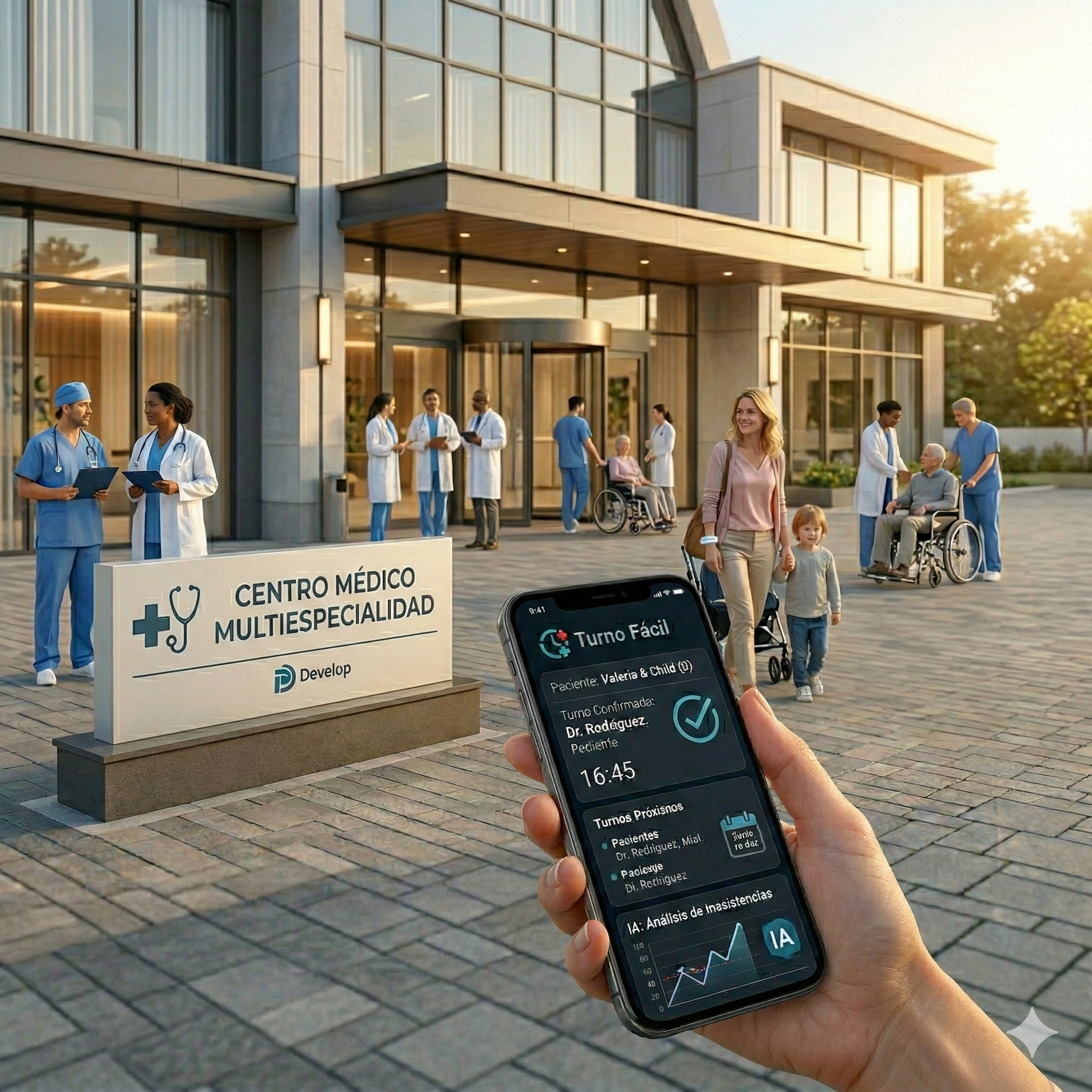 Turno Fácil es un sistema integral de gestión de turnos médicos online que simplifica la administración de citas y mejora la experiencia del paciente. Desarrollado con un enfoque en la seguridad y la usabilidad, el sistema permite a los pacientes reservar, reprogramar o cancelar citas de forma autónoma, mientras que los profesionales de la salud optimizan su agenda y reducen las inasistencias. Integramos inteligencia artificial para ofrecer funcionalidades avanzadas que benefician tanto al paciente como al centro de salud, en línea con nuestra experiencia en el sector salud.